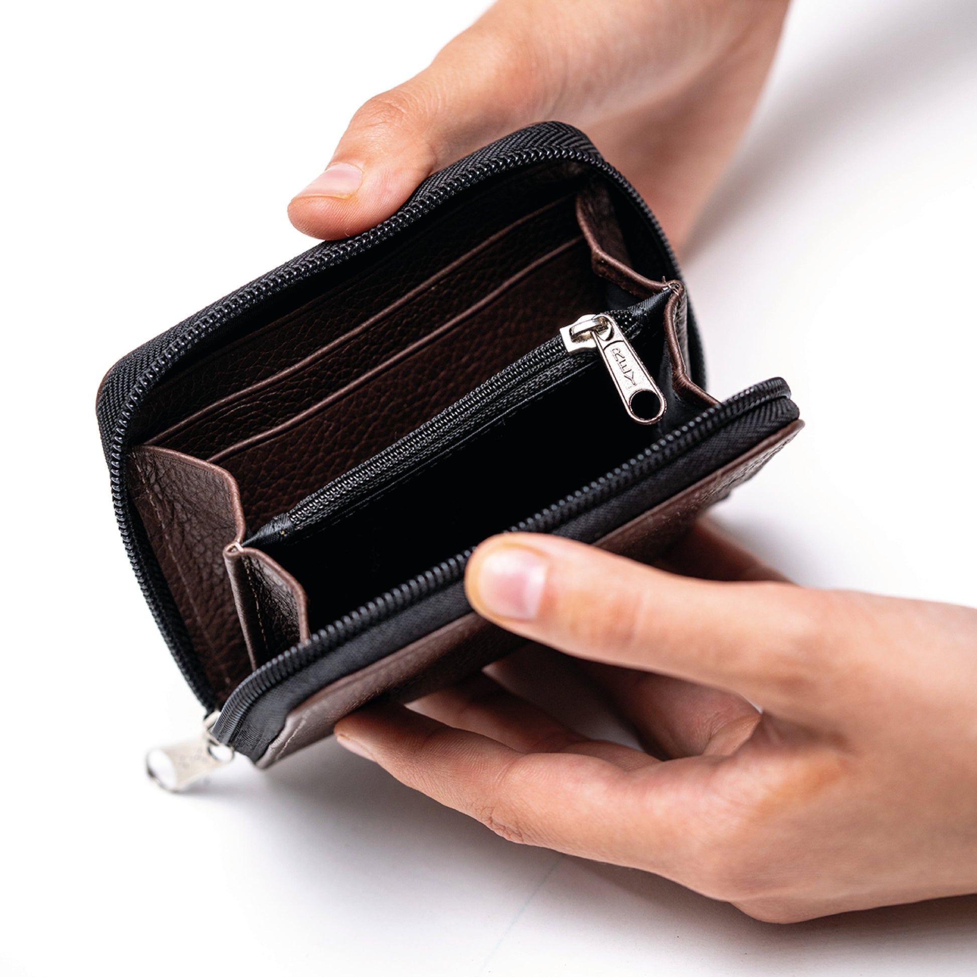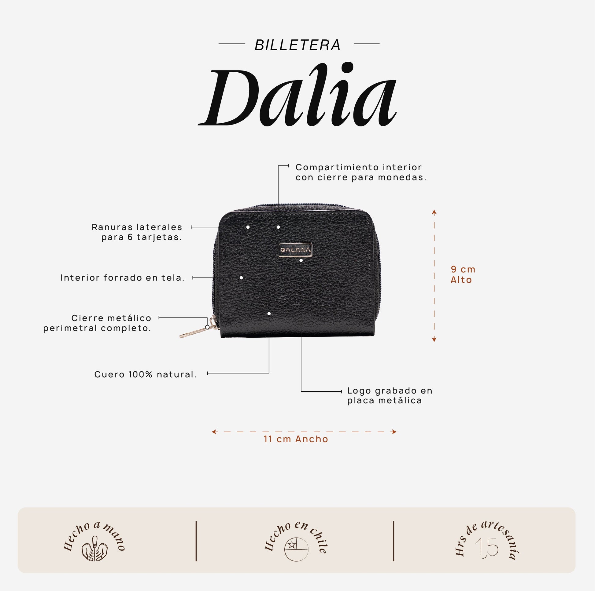 • Interior con divisiones múltiples para organizar tarjetas y documentos.